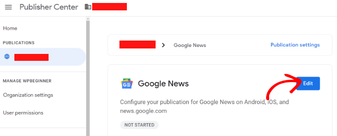 Step 7: Click the edit button on Google news to configure your site for Google News.