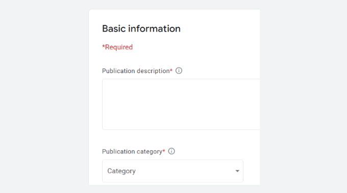 Fill up the basic information of Publication description, this will be your meta description to allow visitors to find your publication.